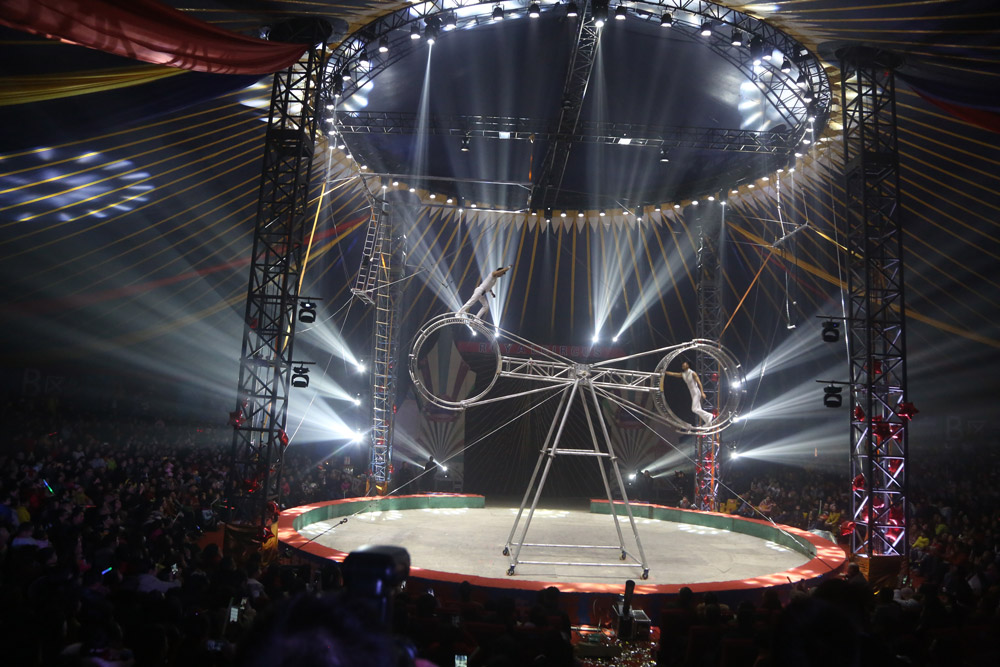 12月25日,海滨欢乐大马戏在国家AAAA级旅游景区――海滨城精彩上演,来自俄罗斯、乌克兰等国家的表演者轮番上阵,给观众们带来了环球飞车、空中飞人、魔幻火轮等惊险刺激的表演,更有黑熊传奇、亚洲象表演、皇家狮虎秀凶猛来袭。