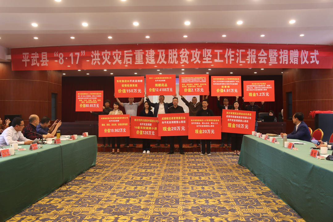会上,成都蛟龙港管理委员会、成都华阳建筑股份有限公司等10余家企业,共捐赠了价值约470多万元资金和物资。
