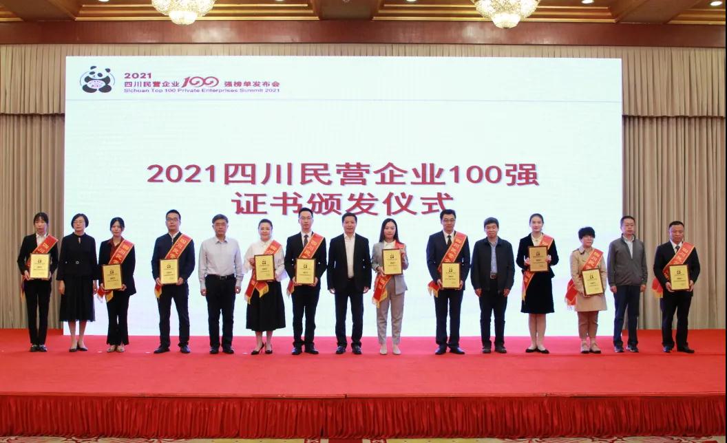 在现场,四川省工商联还发布了《2021四川民营企业100强调研分析报告》,并为20家四川民营企业100强代表颁发证书。