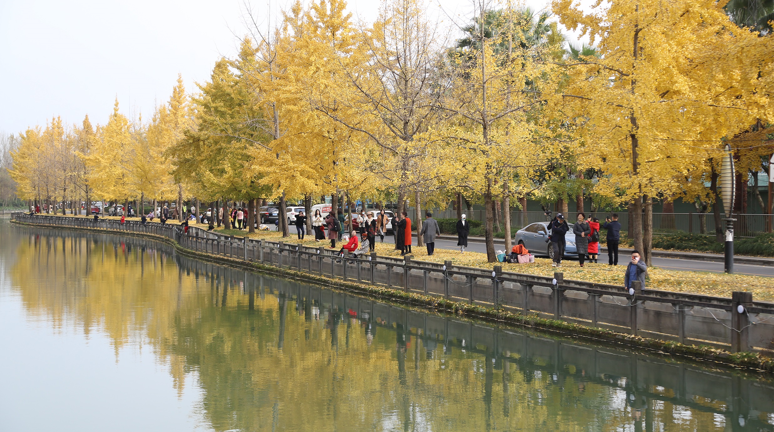 蛟龙港在建园之初就注重生态环境的保护,更是在园区内种植了大量高大乔木及珍惜植被,活水公园银杏林也不例外,成为了广大市民休闲娱乐的好地方,每逢周末,许多市民从四面八方赶来,欣赏秋叶,拍照留念。蛟龙港活水公园银杏林存在时间已有数年,每棵树木笔直挺拔,树木纵横排列整齐有序,因此,被市民们公认的拍照“圣地”,金黄的银杏与白河流水里的倒影互相呼应,成为了一道亮丽的风景线,只要站在道路的任何一端,都可以拍出曲径通幽的秋色美景。