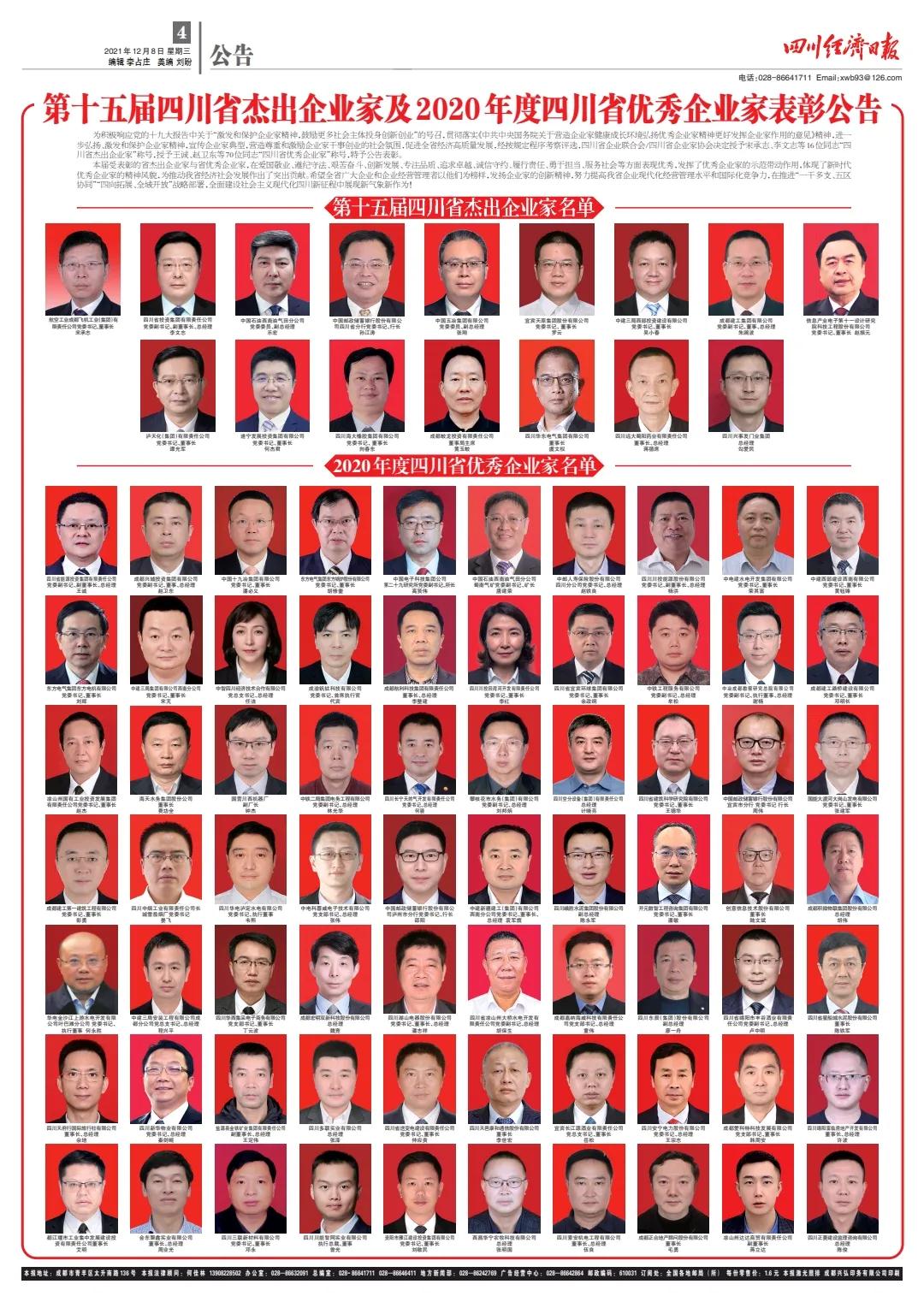 12月10日,进一步弘扬、激发和保护企业家精神,宣传企业家典型,营造尊重和激励企业家干事创业的社会氛围,促进全省经济高质量发展,以“践行绿色低碳发展新理念,开启‘十四五’发展新征程”为主题的“2021全国企业家活动日暨四川企业家年会”在成都召开,会上授予宋承志、黄玉蛟、李文志等16位同志“第十五届四川省杰出企业家”称号,授予王诚、赵卫东等70位同志“四川省优秀企业家”称号。