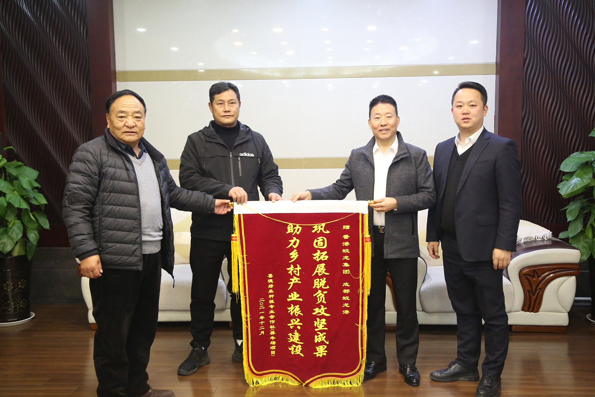 12月22日,凉山州喜德县喜德绿森种植专业合作社将一面写着“巩固拓展脱贫攻坚成果、助力乡村产业振兴建设”的锦旗送到了四川省工商联副主席、香港蛟龙集团董事局主席、成都蛟龙港创始人黄玉蛟手中,对蛟龙港为喜德县脱贫攻坚工作中做出的帮助表示感谢。
