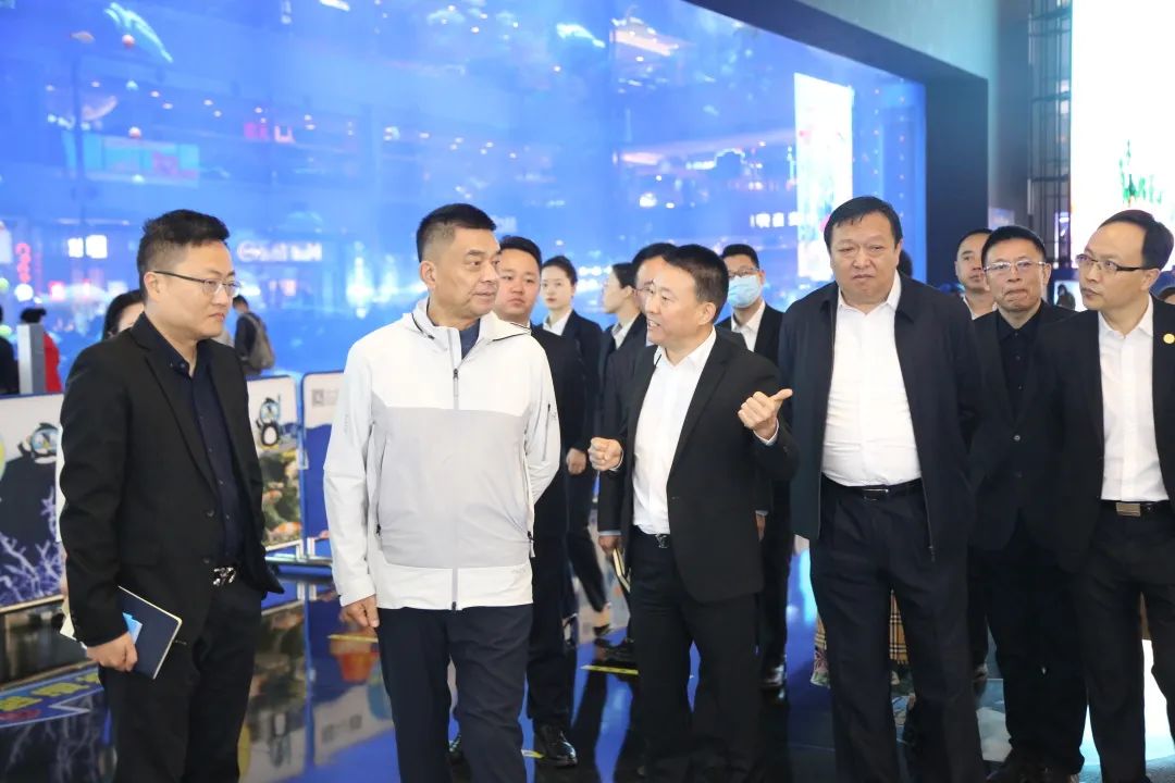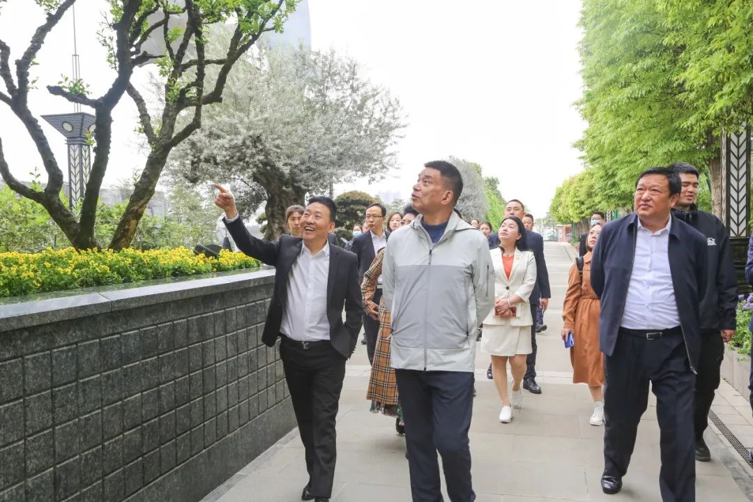 刘永好董事长一行先后参观了成都市非公经济统战工作示范点——蛟龙港同心港湾、成都海滨城景区(浩海立方海洋公园、成都海滨城天空渌道碳中和项目),深入了解蛟龙港产业转型升级成果。