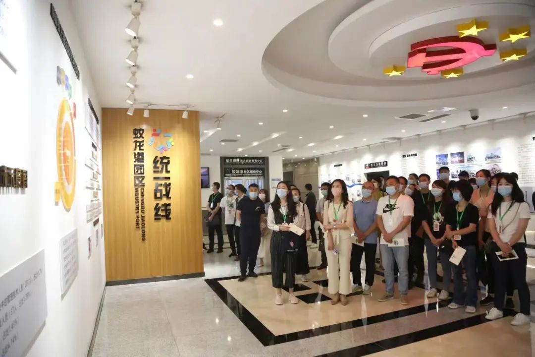 学员们参观非公经济党建、统战工作示范区时,了解到成都蛟龙港在省市区及各级党委政府多年来的关心支持下,连续9年荣获了“中国民营企业500强”等多项荣誉,为深入推进园区党建、统战工作,2009年成立了中共成都蛟龙港委员会,现有百余名党员,紧紧围绕企业党的建设,走民营企业党建之路,卓有成效的开展企业党建工作,打造出了一支开拓创新、团结奋进、作风过硬、富有凝聚力和战斗力的基层党组织队伍。