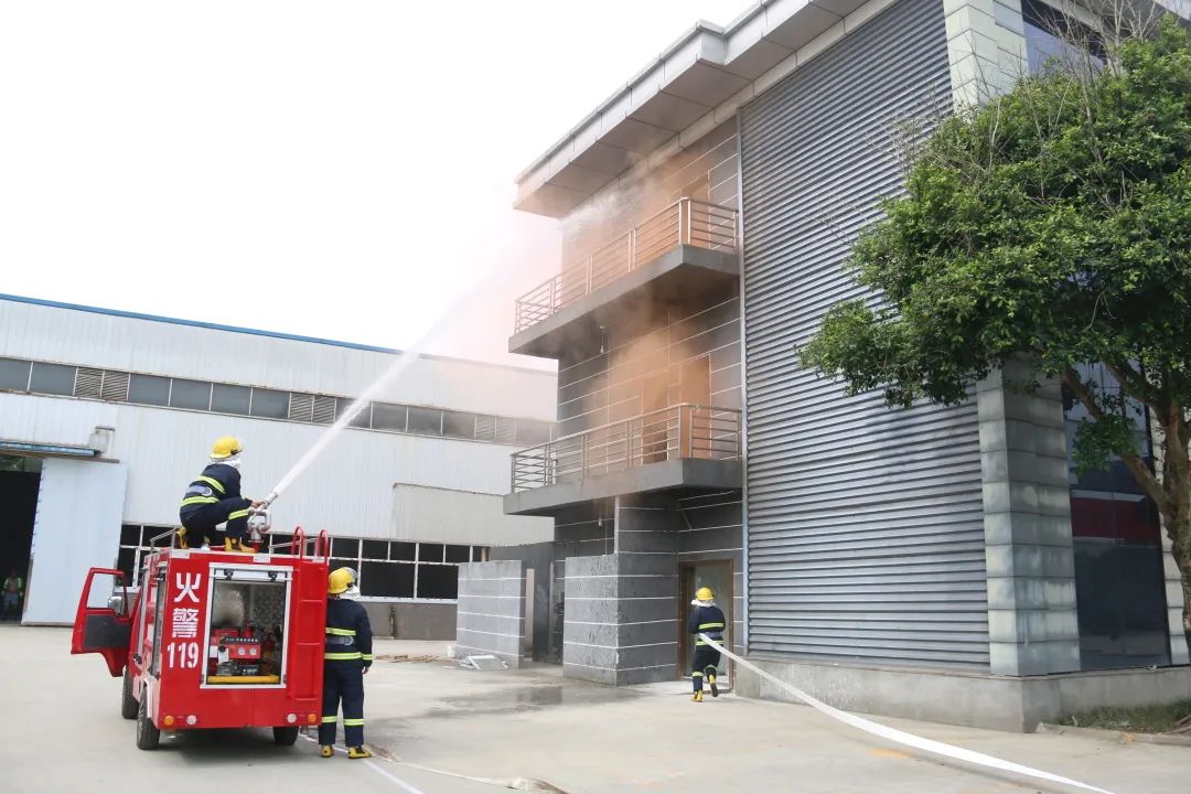 此次演练共设置了2个场景,一是,因连续高温,用电负荷较大,蛟龙大道369园区内办公楼办公楼一楼一间办公室因电气线路过载发热起火,引燃窗帘等可燃物,火势较大,此时办公楼有30余人正在办公;通过各职能组展开救援、疏散工作、进行灭火,与微型消防站消防队员共同努力,明火被扑灭。二是,某包装厂生产车间和仓库积水达到30厘米,部分设备和物资被淹;演练开始,现场设置警示标识,封闭交通,进行现场交通疏导,展开提供应急照明、抢救现场物资、放置沙袋、抽水泵排水管等工作。