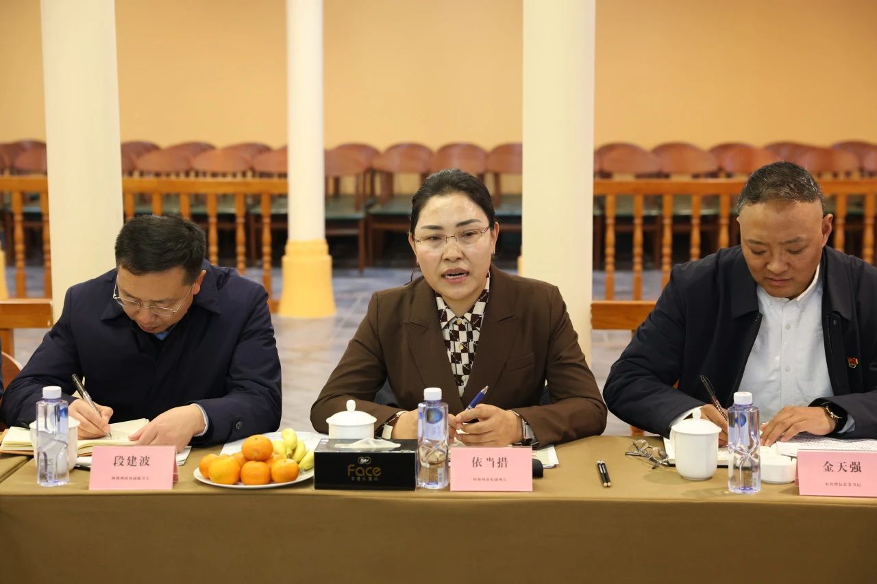 为深入贯彻“省内对口支援涉藏州县工作会”精神,根据阿坝州委统战部、州工商联《关于进一步推进“大手牵小手”行动,助力阿坝州民营企业高质量发展的请示》,结合阿坝州资源优势和民营企业发展实际,2024年1月19日,四川省工商业联合会在成都蛟龙港召开推动阿坝州重点项目、助力阿坝州民营企业高质量发展座谈会,四川省工商联党组成员、副主席孙宁,省工商联副主席、香港蛟龙集团董事局主席、成都蛟龙港管理委员会主任黄玉蛟等省工商联班子成员,阿坝州政府副州长依当措,阿坝州政府副秘书长段建波,中共理县县委书记金天强等领导出席会议。