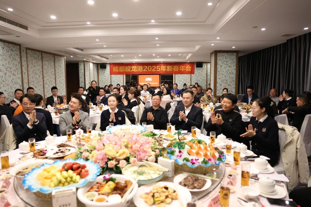 2025年1月9日,成都蛟龙港搭建了一个促进蛟龙港服务业企业家们深入交流与学习的平台,四川省政协常委、省工商联副主席、香港蛟龙集团董事局主席黄玉蛟携手蛟龙港内的部分服务业企业家们,在海滨城景区的港粤食府隆重举办了成都蛟龙港2025年新春服务业年会。