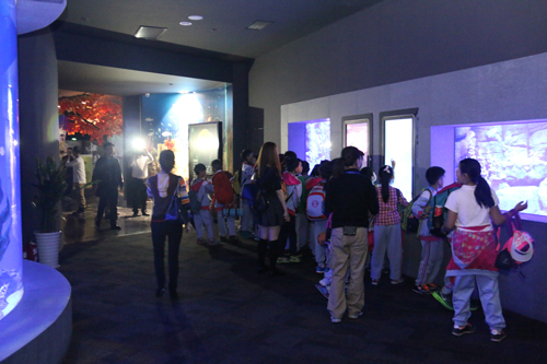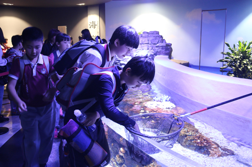 随后,成都金苹果公学的同学们还参观了蛟龙港活水公园及蛟龙港海洋生物酒店。在参观活水公园时,当在污水处理水质展示区看到处理前后水质的巨大差异,孩子们纷纷询问工作人员,你们是怎样把那么脏的污水处理出来还能养鱼的呢?工作人员细心的为孩子们进行了讲解。在蛟龙港海洋生物酒店内,孩子们还了解到,为了让鱼类更好的适应环境,除了大型鱼类可直接入住“浩海立方”海洋馆外,其它的海洋生物都需要到海洋生物酒店调养、体检,以最好的状态入住到“浩海立方”海洋世界。