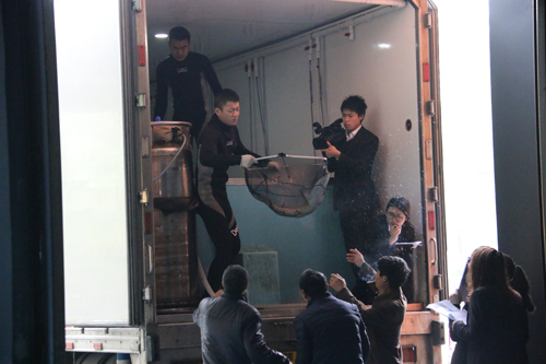 据悉,此次抵达暂养区的鱼朋友有海神象、柠檬鲨、金目吊、大目仔、皇帝、皇后、花旦、文吊、关刀、兰吊、番王、北斗神仙、蝶鱼类、吊鱼类等一千余条,它们都来自大海深处,捕捉相当困难,今天它们通过大型运鱼车一同从海南长途跋涉来到成都蛟龙港浩海立方暂养池,来到这早早为它们准备好的新家。在这儿,它们将是我们人类的朋友,将和我们共同成长。