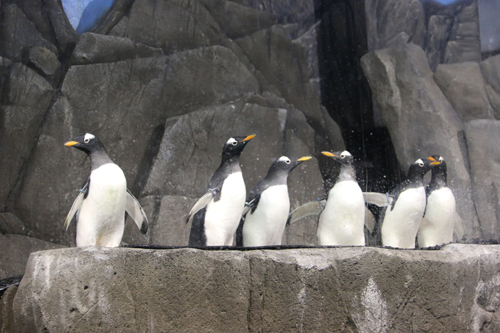 在工作人员的帮助下,小企鹅们纷纷跳出笼子,像绅士一样,排着整齐的队伍进入新家,它们穿着黑色的燕尾服,挺着圆圆鼓鼓的白肚皮,翘着嘴巴,还拍着一对小翅膀,甚是可爱。
