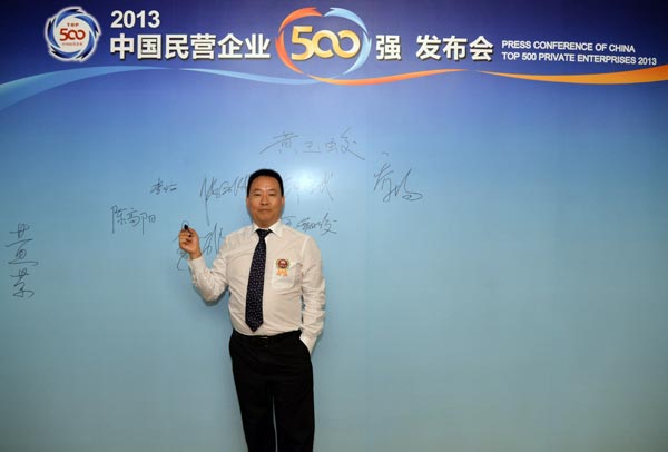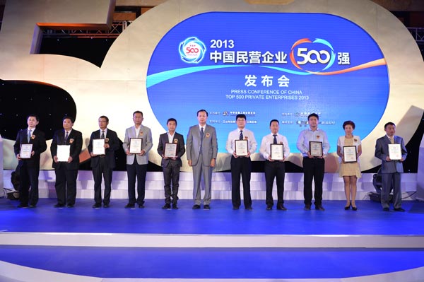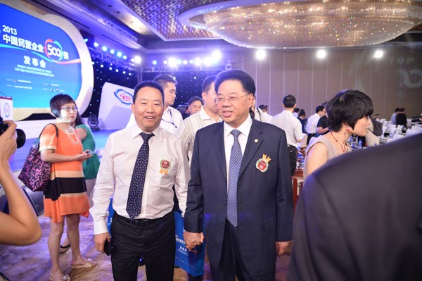 2013年8月29日,由全国工商联主办,工业和信息化部、国家工商总局支持的“2013中国民营企业500强发布会”在北京召开,中央电视台财经频道、新浪网财经频道全程播报此次盛会。全国政协副主席、全国工商联主席王钦敏,中央统战部副部长、全国工商联党组书记、常务副主席全哲洙,全国工商联副主席黄荣、庄聪生、安七一、何俊明、张建宏、茅永红,工业和信息化部党组成员、总工程师朱宏任,国家工商总局党组成员、副局长孙鸿志,中国民生银行行长洪崎,中国民间商会副会长傅军等出席了发布会。
