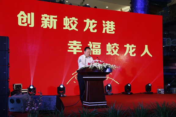 最后,黄玉蛟上台致辞,对各位尊贵嘉宾的到来表示热烈的欢迎,也与嘉宾们共同分享了蛟龙港这十余年来的发展和未来宏图大展的雄心,并向所有关心、支持、帮助蛟龙港建设发展的领导和朋友致以新春的问候和美好的祝福。