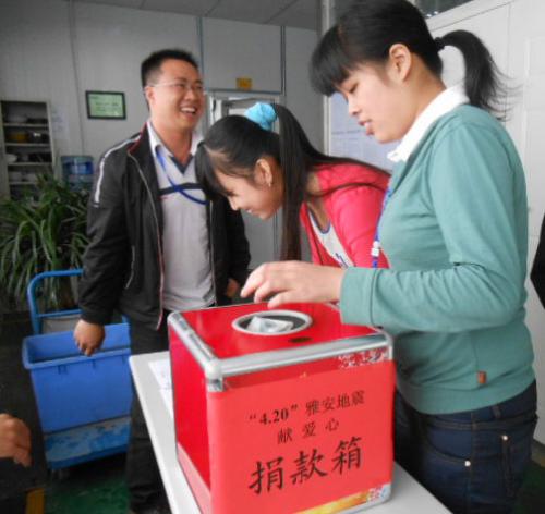 派斯光学有限公司在雅安地震中举行爱心捐款