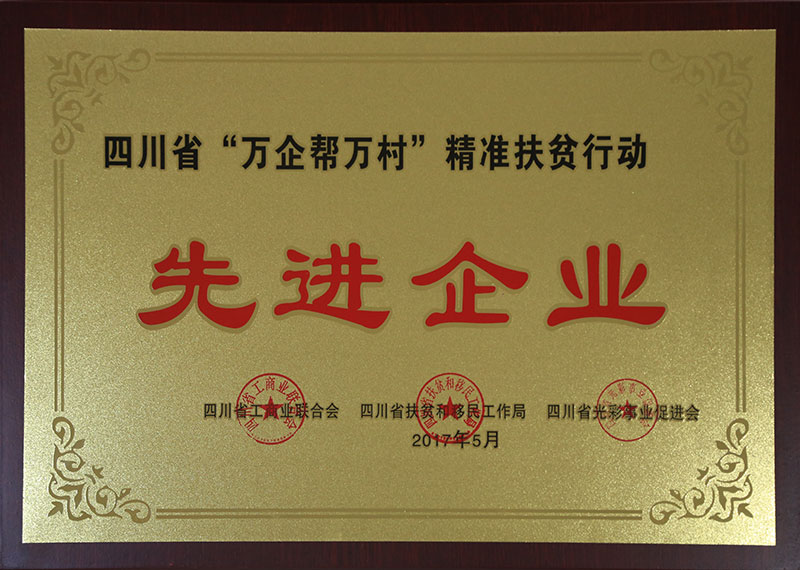 2017.10 成都蛟龙港获评为“四川省‘万企帮万村’精准扶贫行动先进企业